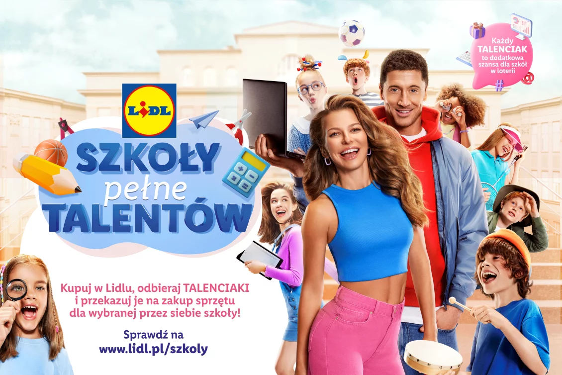 Zapraszamy wszystkie Placówki Oświatowe* do udziału w „Wielkiej Szkolnej Loterii”. Wystarczy zarejestrować się na stronie internetowej lidl.pl/Szkoly między 22.08.2022 r. a 20.11.2022 r. oraz zgromadzić na swoim indywidualnym koncie uczestnika przynajmniej 1 Talenciak (zgodnie z regulaminem kampanii „Szkoły Pełne Talentów”).