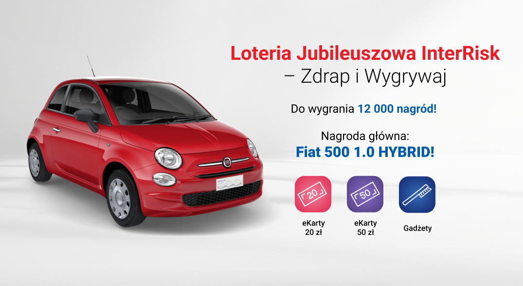 Każda polisa Pakiet Auto+ z inkasem nagradzana dodatkowym losem w finale. Im więcej losów, tym większa szansa na kultowego Fiata 500!